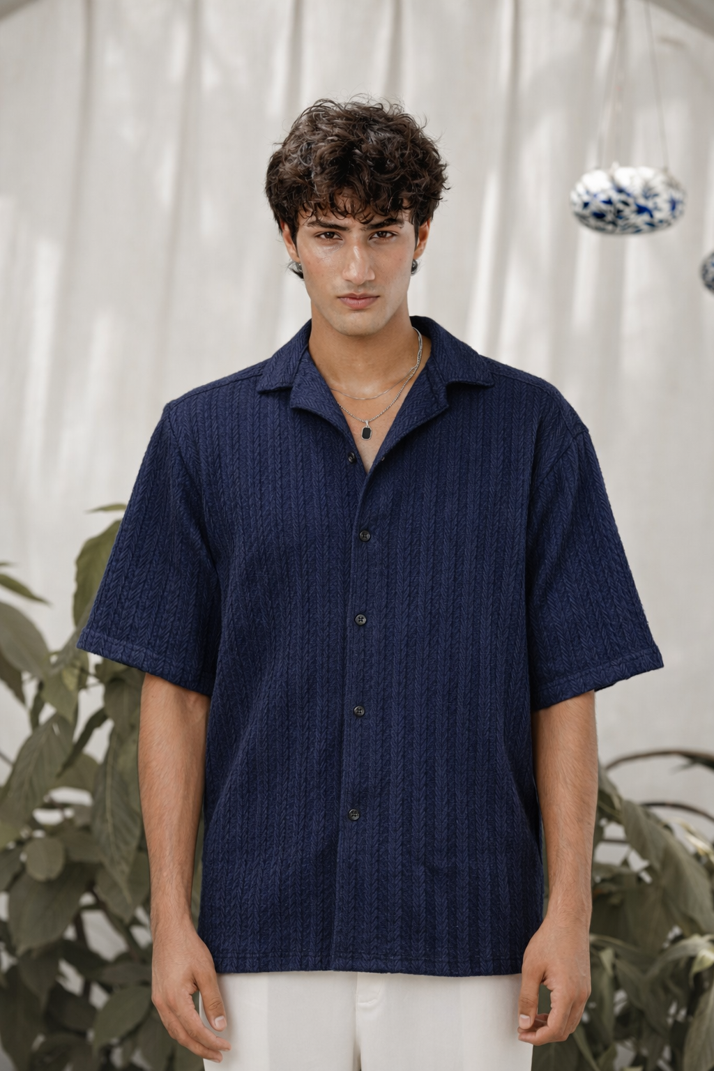 AFTERDARK NAVY CUBAN OVERSIZED SHIRT