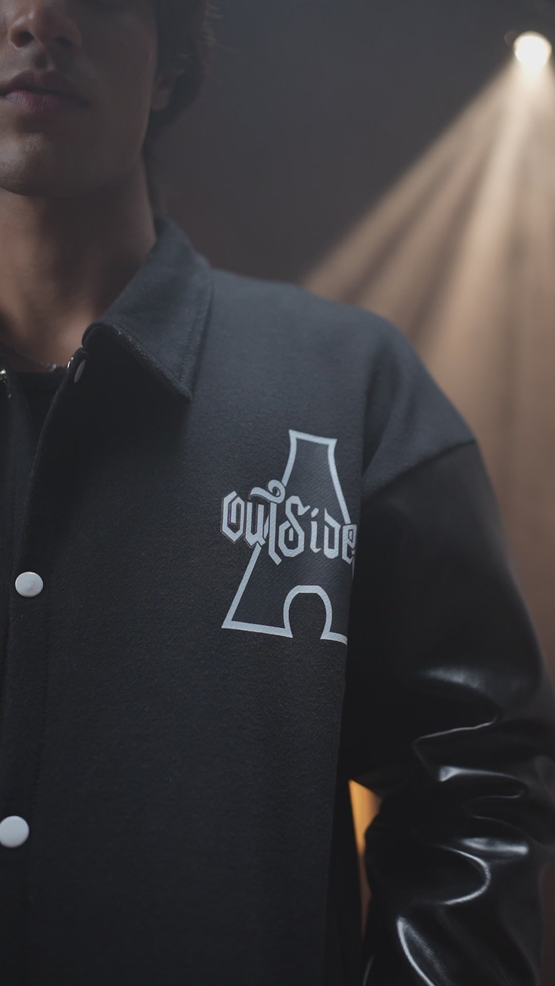 EVOLVE FAUX LEATHER SLEEVES VARSITY JACKET